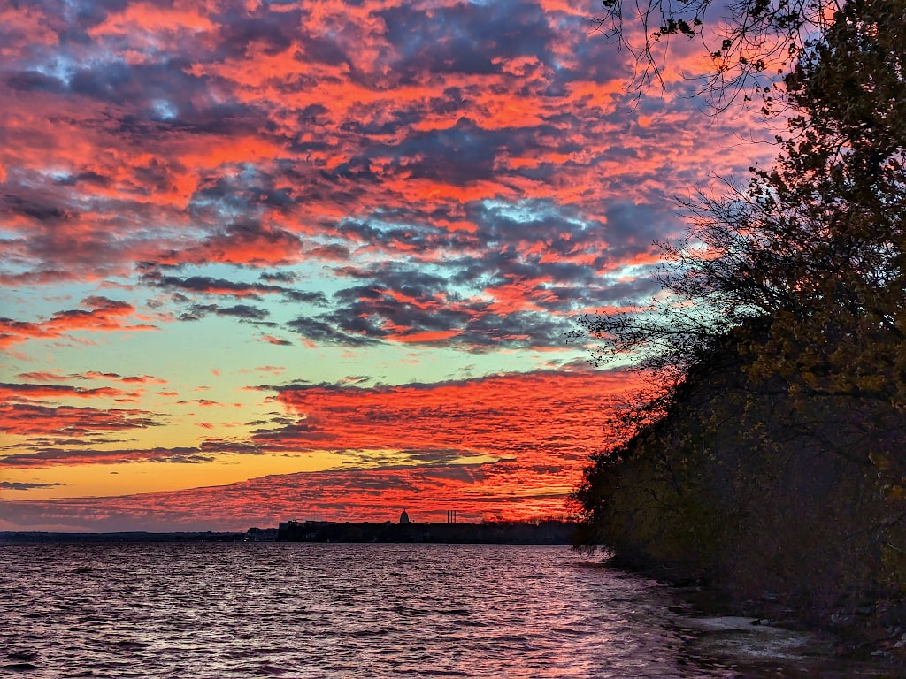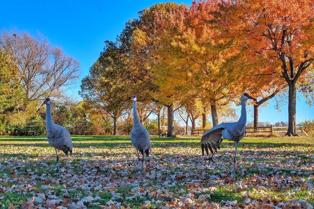 It’s always fun to bike past this Dr. Evermor sculpture (Dreamkeepers) on the Capital City Trail, but even more so when these giant creatures are standing tall next to some stunning fall color.