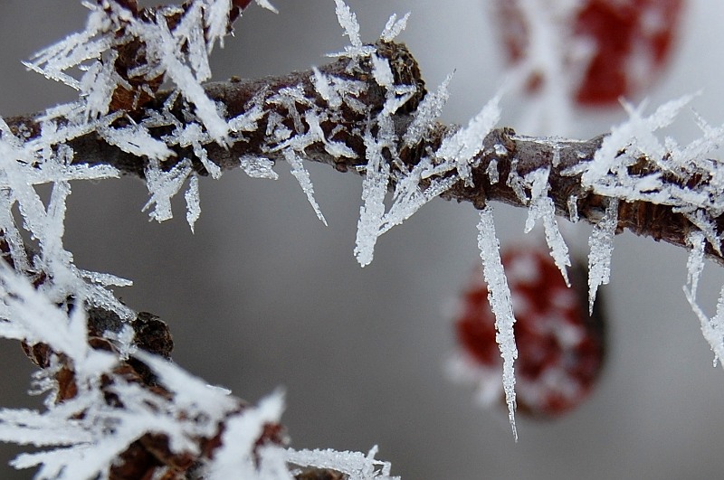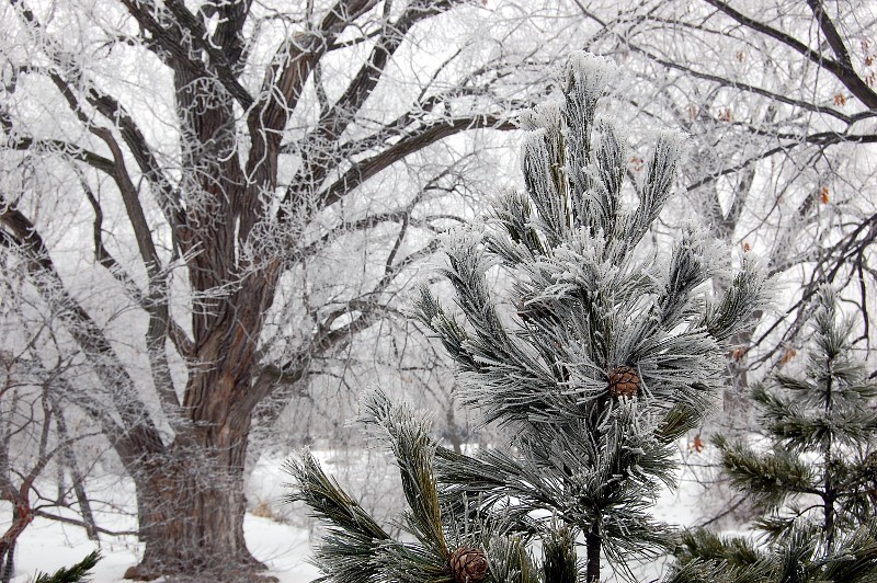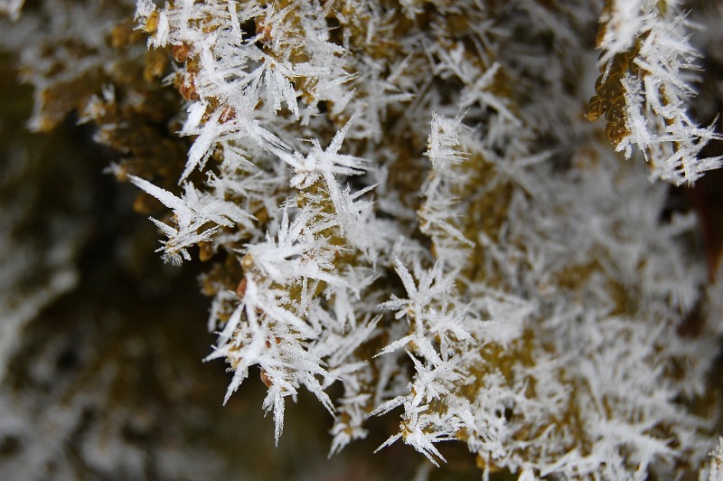 Sometimes, the hoarfrost was so thick, it looked like the plants had sprouted white fur.