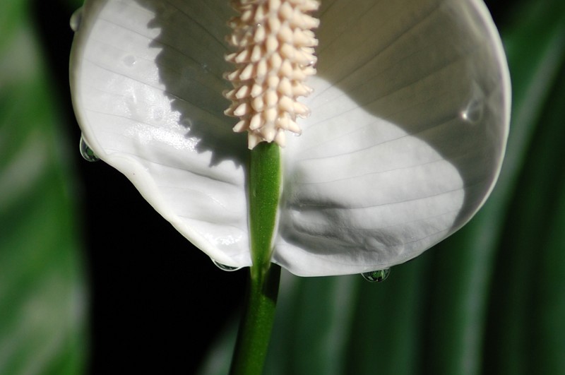 With macro photography, you really need to pay attention to the depth of field. Notice how the lower edge of the peace lily is nice and sharp, compared to the center of the blossom. Using manual focus can help a lot in these situations, and the Promaster lens in manual focus mode is very smooth. Fine adjustments are easy to make.