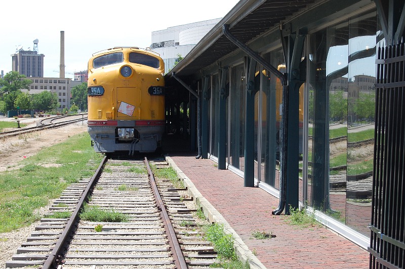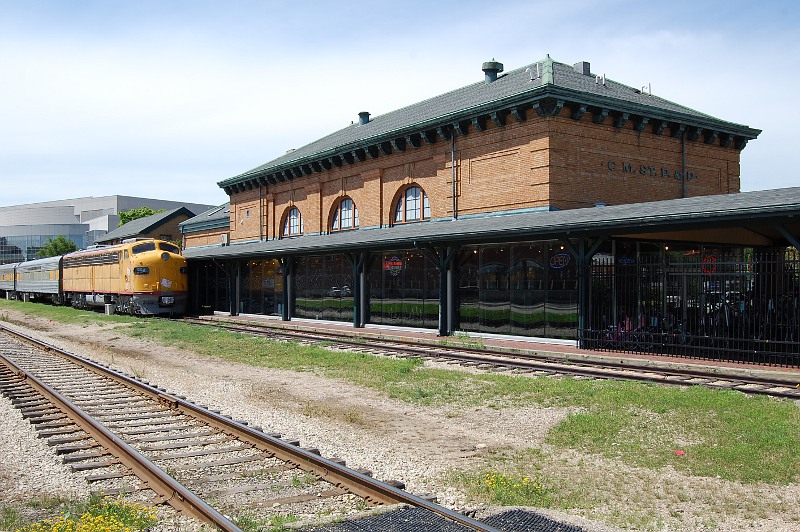 At the former site of the city’s Milwaukee Road station, a passenger train sits dormant.