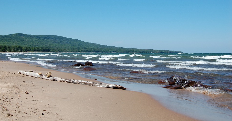 Halfway through my camping vacation, I left northern Wisconsin and drove up to Porcupine Mountain State Park, in Michigan’s Upper Peninsula. As soon as the highway I was on hit the coast of Lake Superior, I stopped at the nearest picnic spot and hiked along the beach.