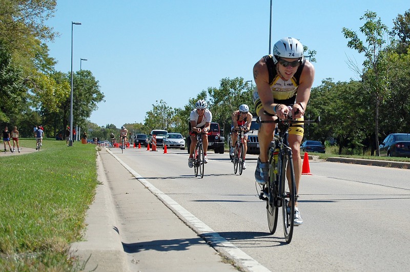 I went bicycling along Lake Monona yesterday. The Ironman Wisconsin race was going on at the time, and I took a break from my ride to photograph and cheer on the racers (who were riding along side the recreational trail).