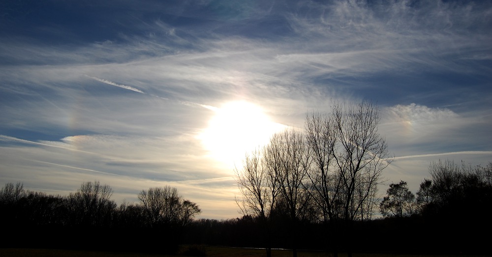 While out hiking this afternoon, I spotted some sun dogs in the cirrus clouds moving across the sky.