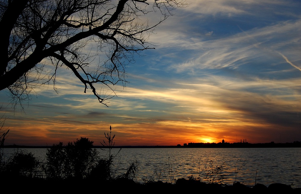 The sun is dropping out of the sky way too early these days. I took these pictures of the sun setting over Lake Monona about 4:30 in the afternoon the other day.