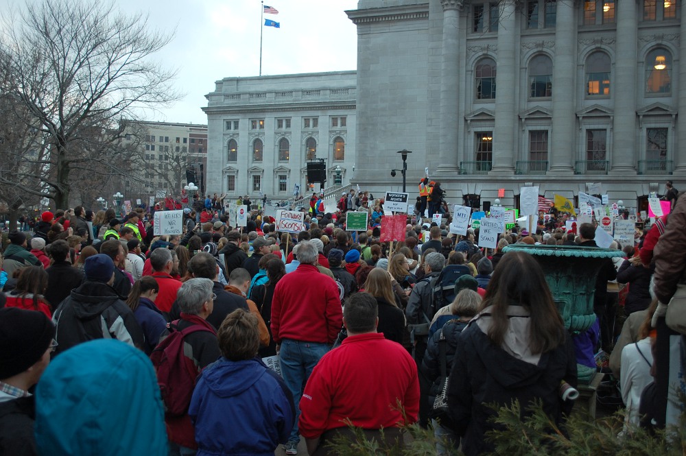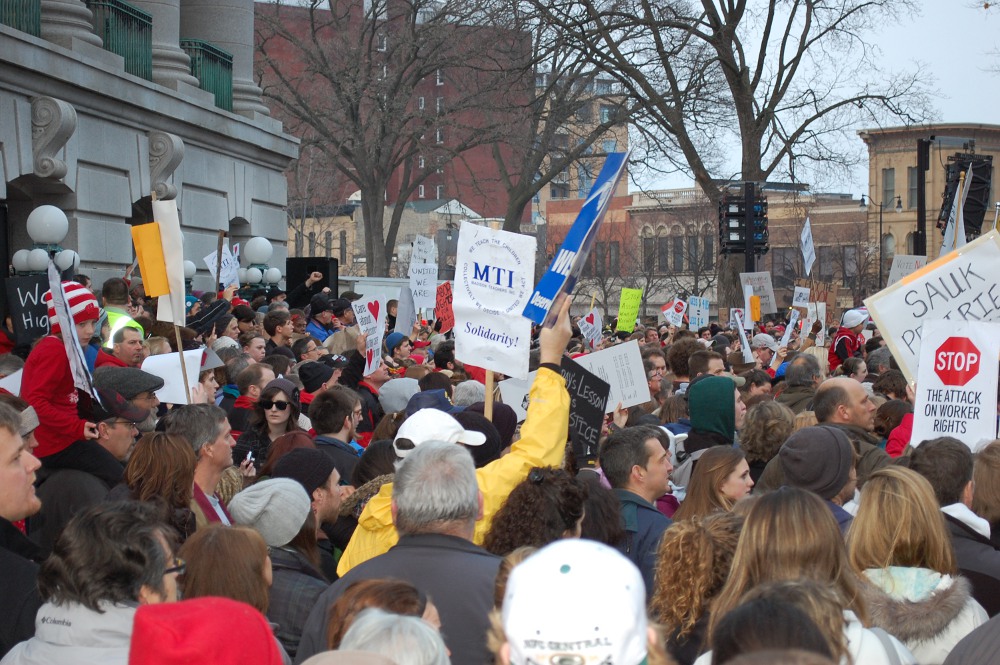 With the protests against Governor Walker’s budget bill going on for the third day, I felt compelled to go to the Capitol after work.