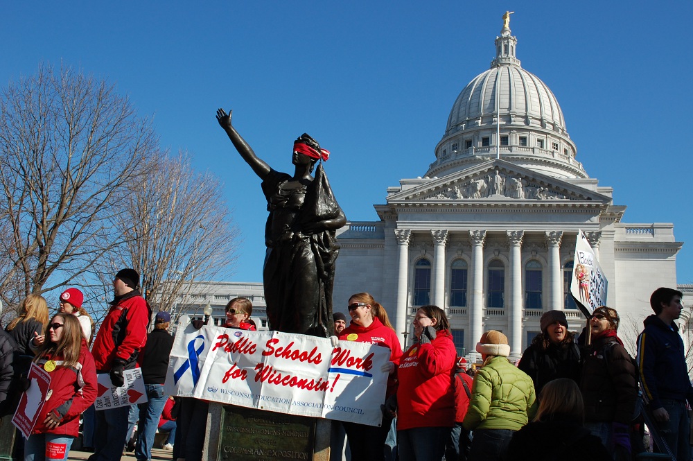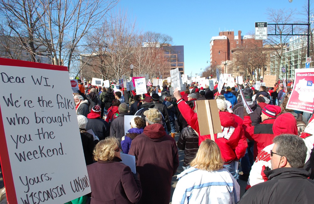 As one of those protesting, it makes me proud there were no arrests, and no violent clashes. It was quite amazing how polite and respectful people were. At one point, the group I was marching with passed some pro-Walker protesters along the sidewalk. Someone in my group started to shout disrespectful things at them. A woman in our anti-Walker group went over to him and said “Hey that’s not cool” and he stopped. I’m sure she was a teacher!