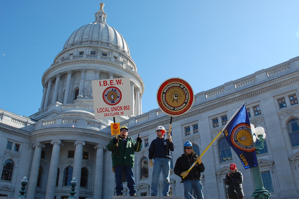 The anti-Walker contingent held their official rally in the rotunda (estimated at 8,000).