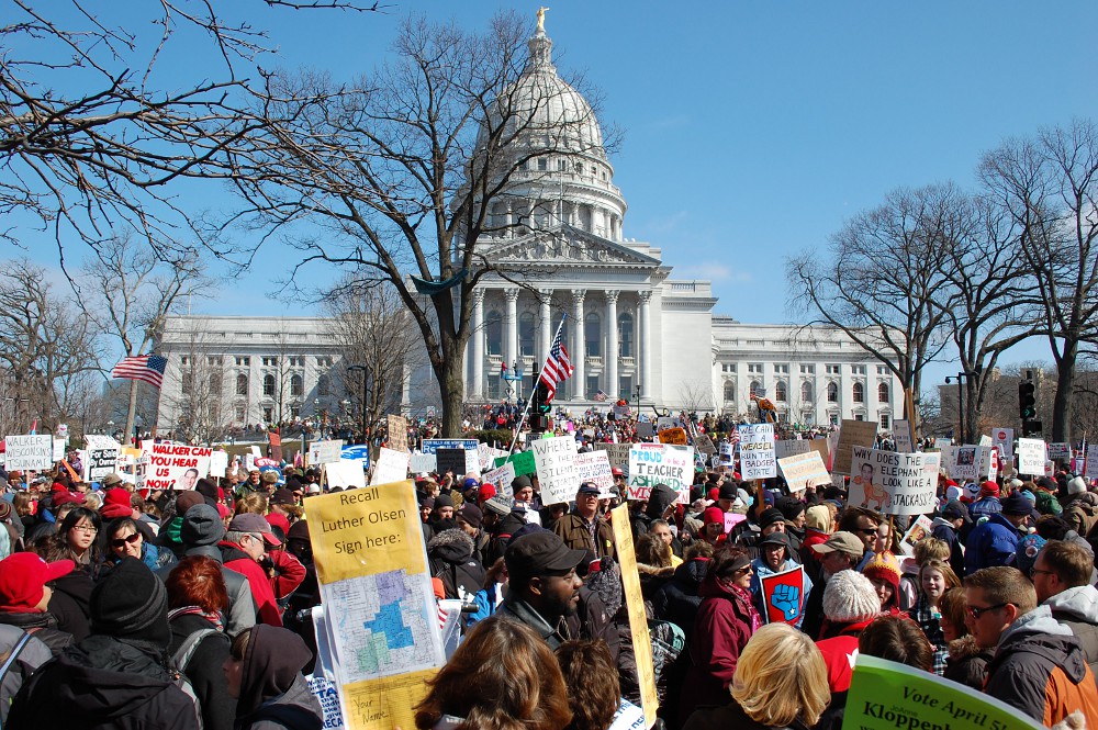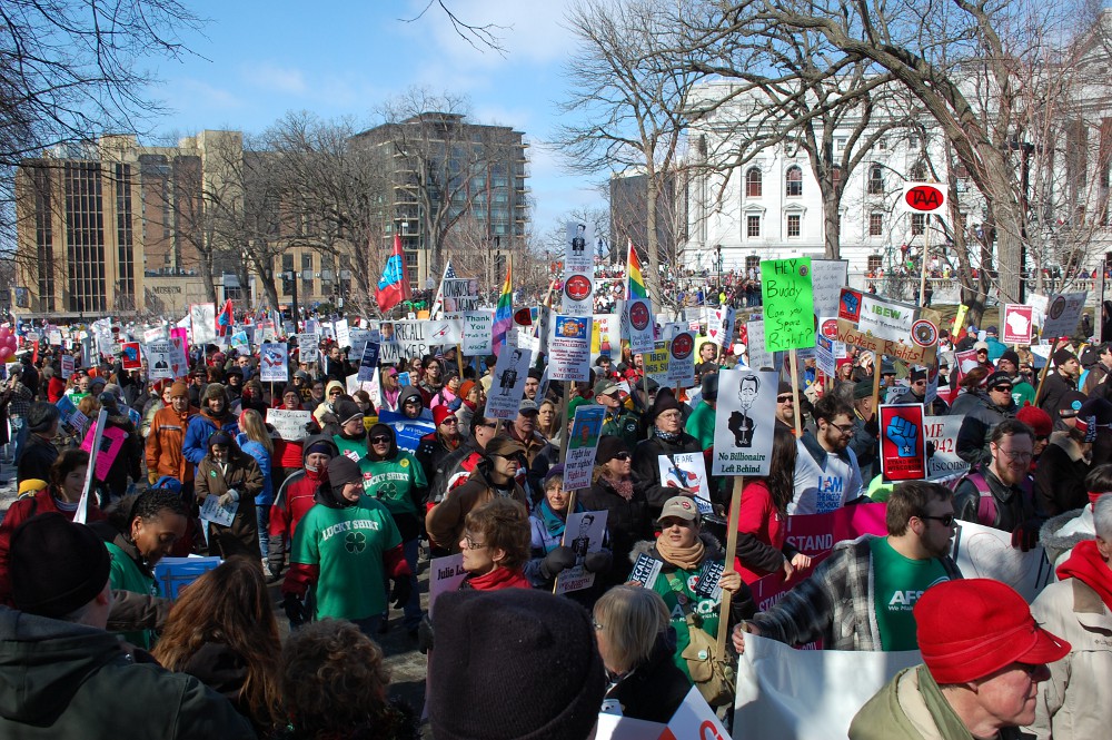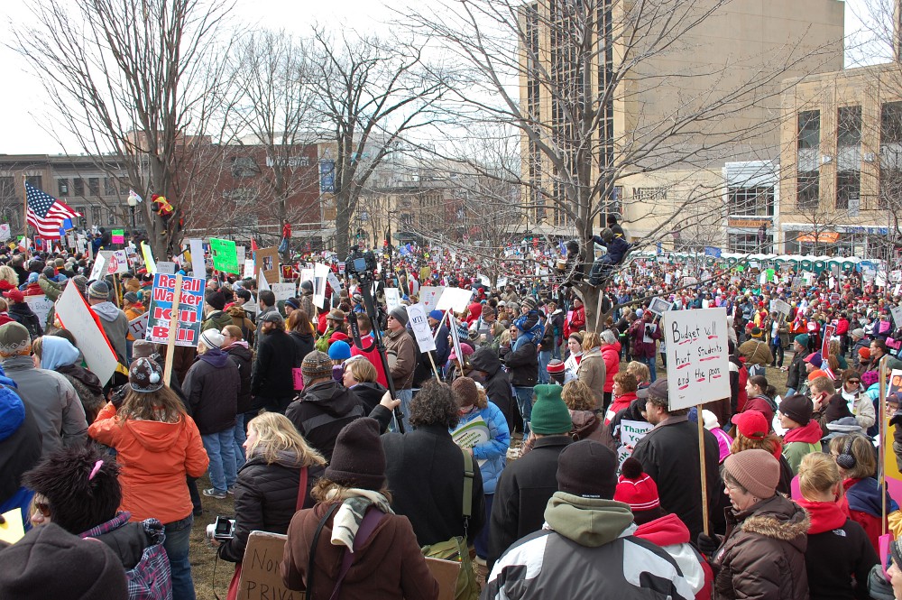 The City of Madison estimates 85,000 to 100,000 people were on the square today, with no arrests. I continue to be immensely proud of my fellow citizens, standing up for what we believe in a peaceful and civilized manner.