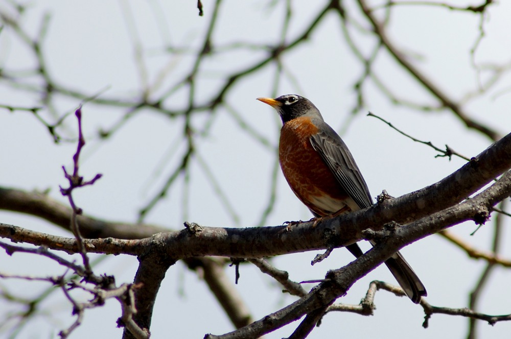 Robin perched on bare tree