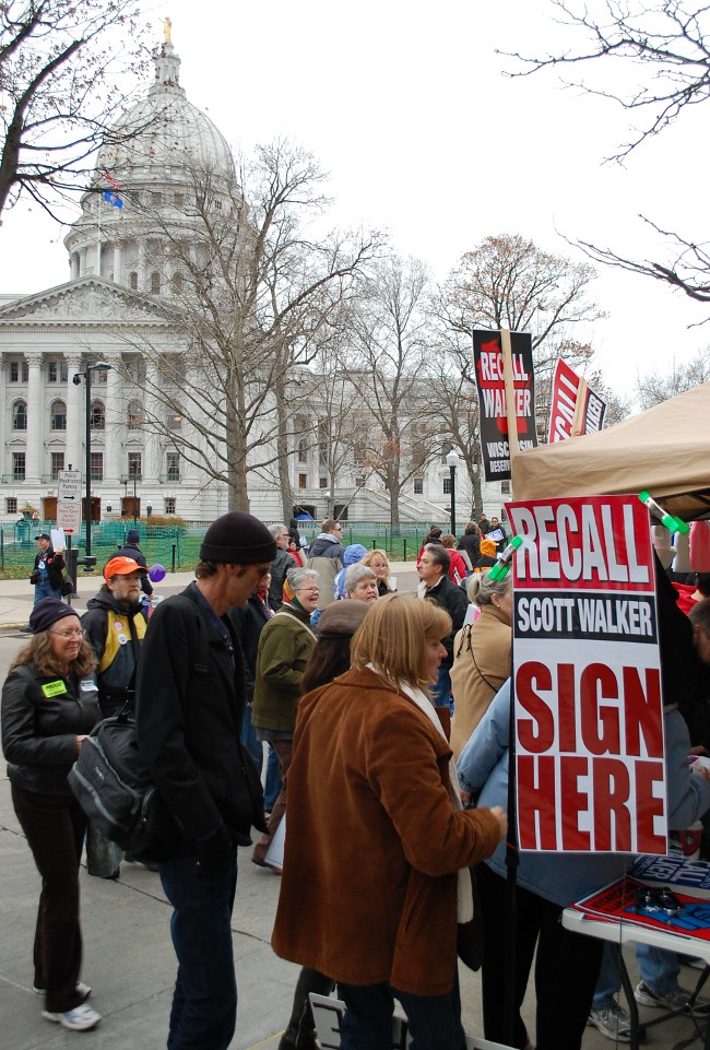 This week, my beloved Wisconsin began the process of collecting signatures to recall Governor Walker. A recall rally was held at the Capitol today and I couldn’t pass up the chance to go.