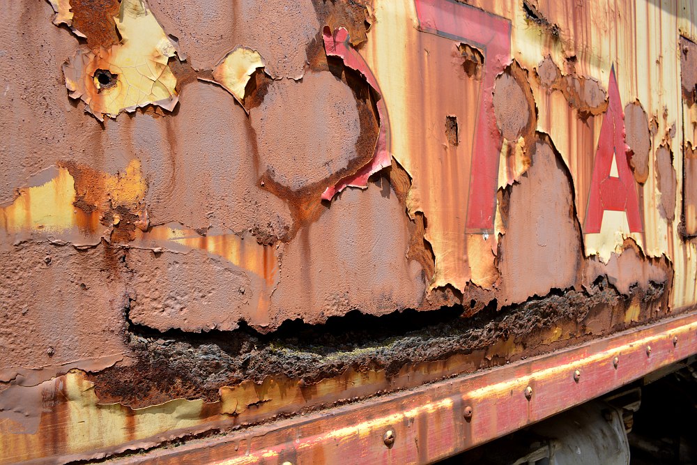 Closeup of rust on the side of Milwaukee Road 37A