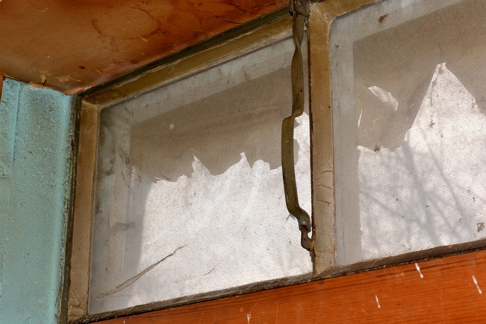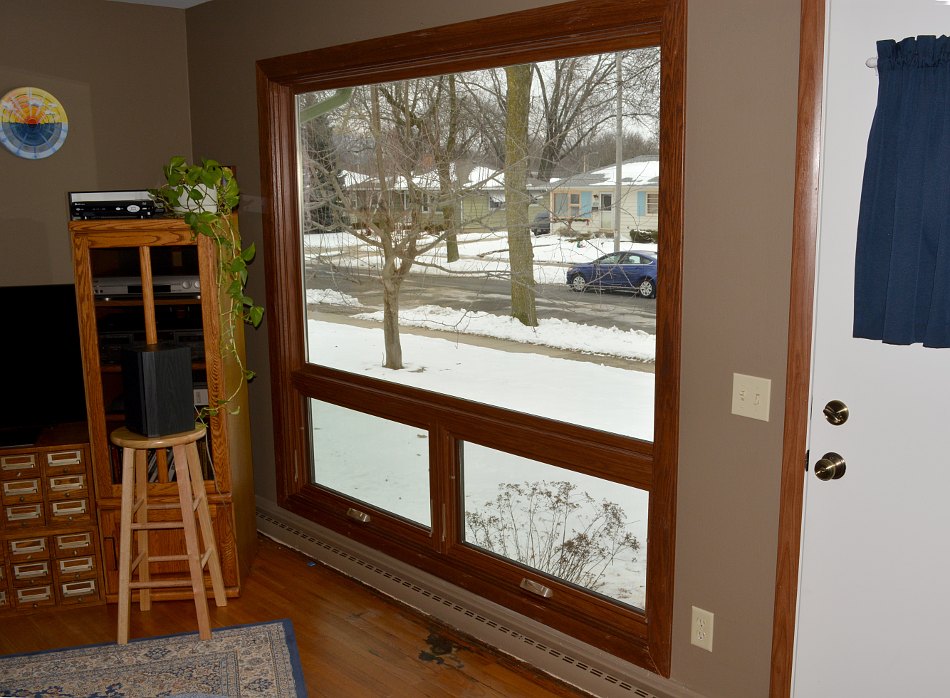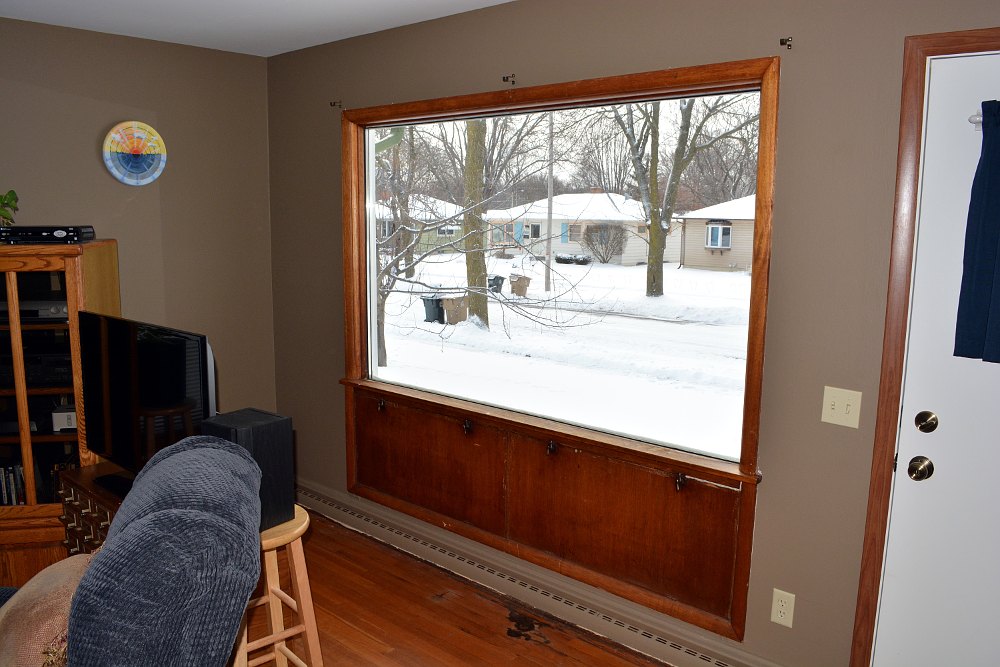 The old one had wood panels on the bottom, with screens so you could open them up. In the winter you could feel drafts from the edges of the panels. Brrrrr! Those were replaced with awning windows that crank open.