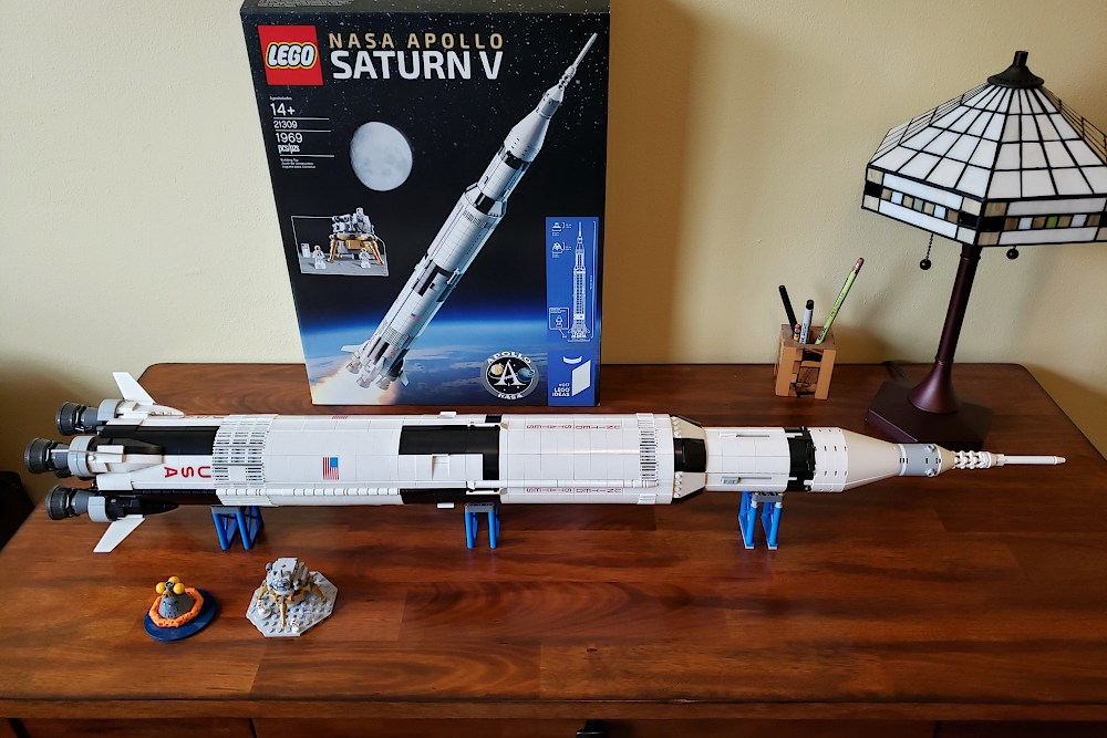 To commemorate this anniversary, I built a Lego NASA Apollo Saturn V kit. 1969 pieces in 12 bags. I decided to build one bag a day, and document my progress. All the photos below were taken after each bag was complete.