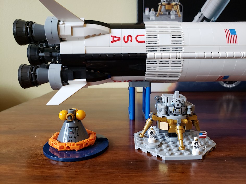 A lunar module (which does fit in the rocket below the service module), and an extra command module for a splashdown scene were also included in the kit.
