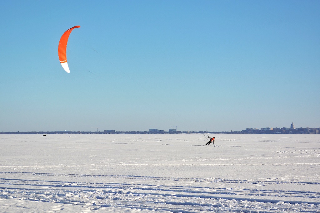 Say what you will about Wisconsinites, but we do know how to have fun in the winter. I came across this person kite skiing, while I was out for a walk on the Lake Mendota ice.