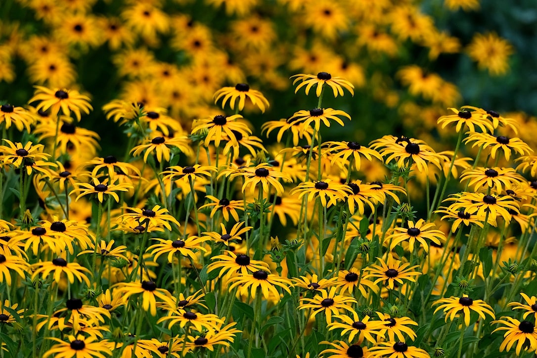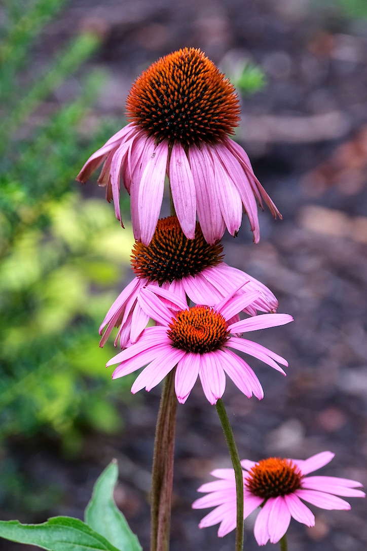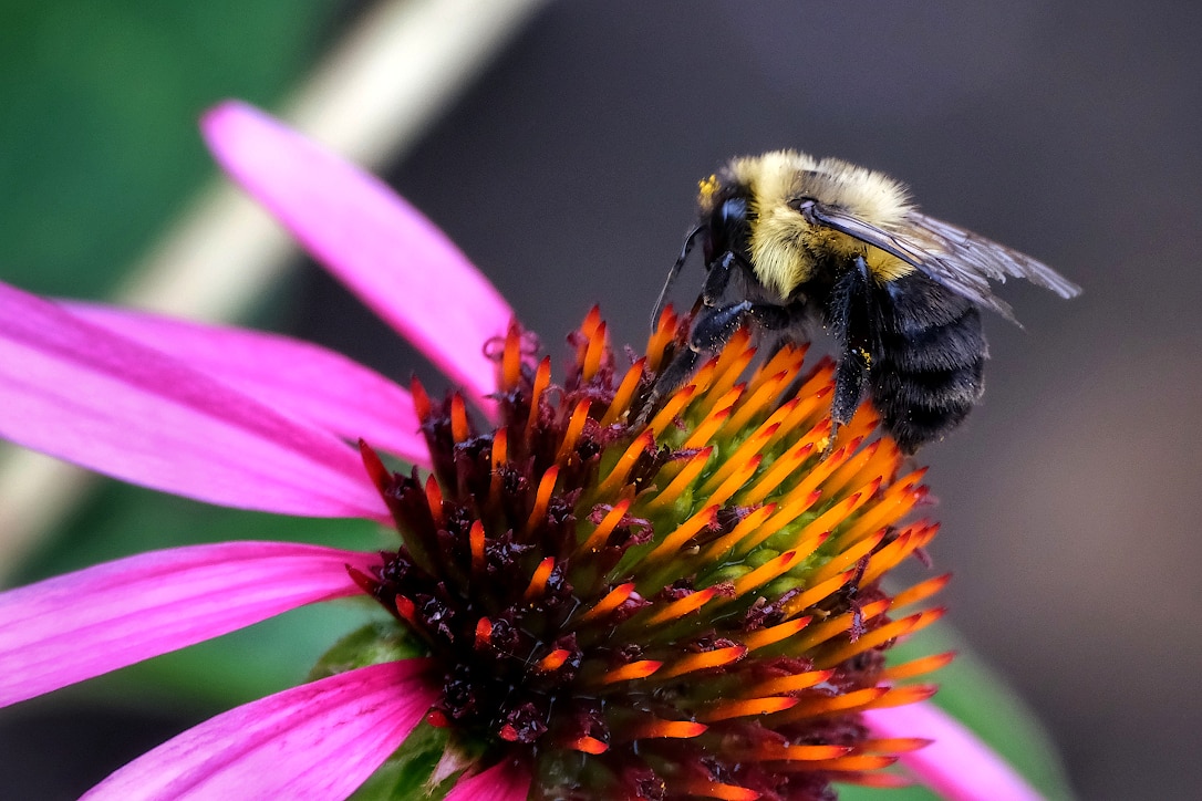 August blooms August 28, 2023Flowers, InsectsJonathan Catching up on some flower photos from this month. First, a moonflower after a rain shower. Purple cone flowers, with a bonus bee. And some black-eyed Susans.