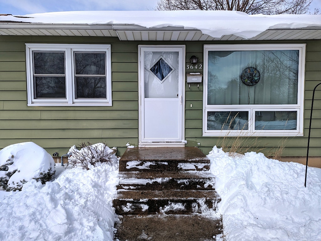 Sadly, I had to clear off the stoop, even though it did give the house some cool winter curb appear.